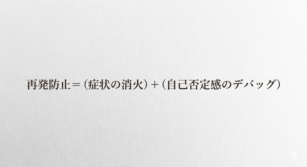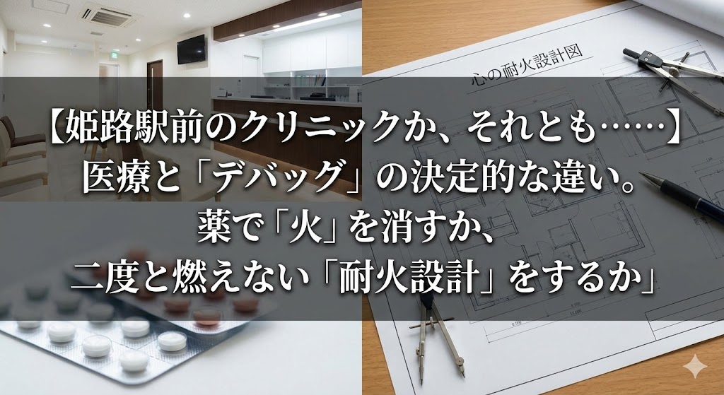 病院で火(症状)を消しても、心の中に「自己否定感」という可燃性のバグが残ったままなら、また職場で上司に怒鳴られれば再発(引火)します。