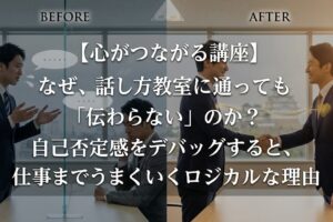 • フィールハートの役割: 「何かあると自分を責めてしまう」「他人の顔色を伺いすぎる」といったOSの脆弱性(バグ)を特定し、デバッグすること。